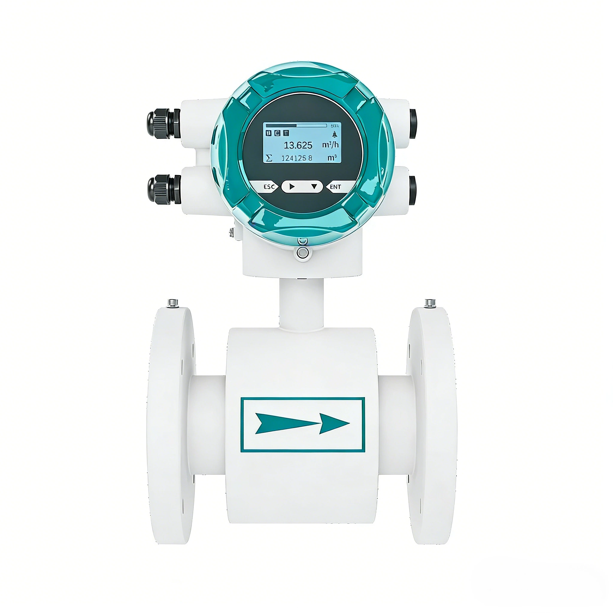 The electromagnetic flowmeter is designed based on the Faraday electromagnetic induction principle and is used to directly measure the flow rate of conductive liquids in closed pipelines.