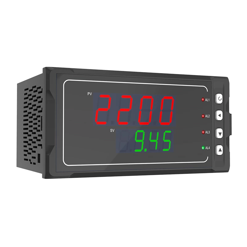 Dual-loop digital display controller with automatic SMD packaging technology has a strong anti-jamming capability. It can be used in conjunction with various sensors、transmitters to display temperature, pressure, liquid level, speed, force and other physical parameters, and to output alarm control, analog transmission, RS-485/232 communication etc. Designed with dual-screen LED display, you can set the displaying contents of upper and lower screen, and through mathematic function you can make addition, subtraction, multiplication and division to the two input loop input signals, and it has a very good applicability.