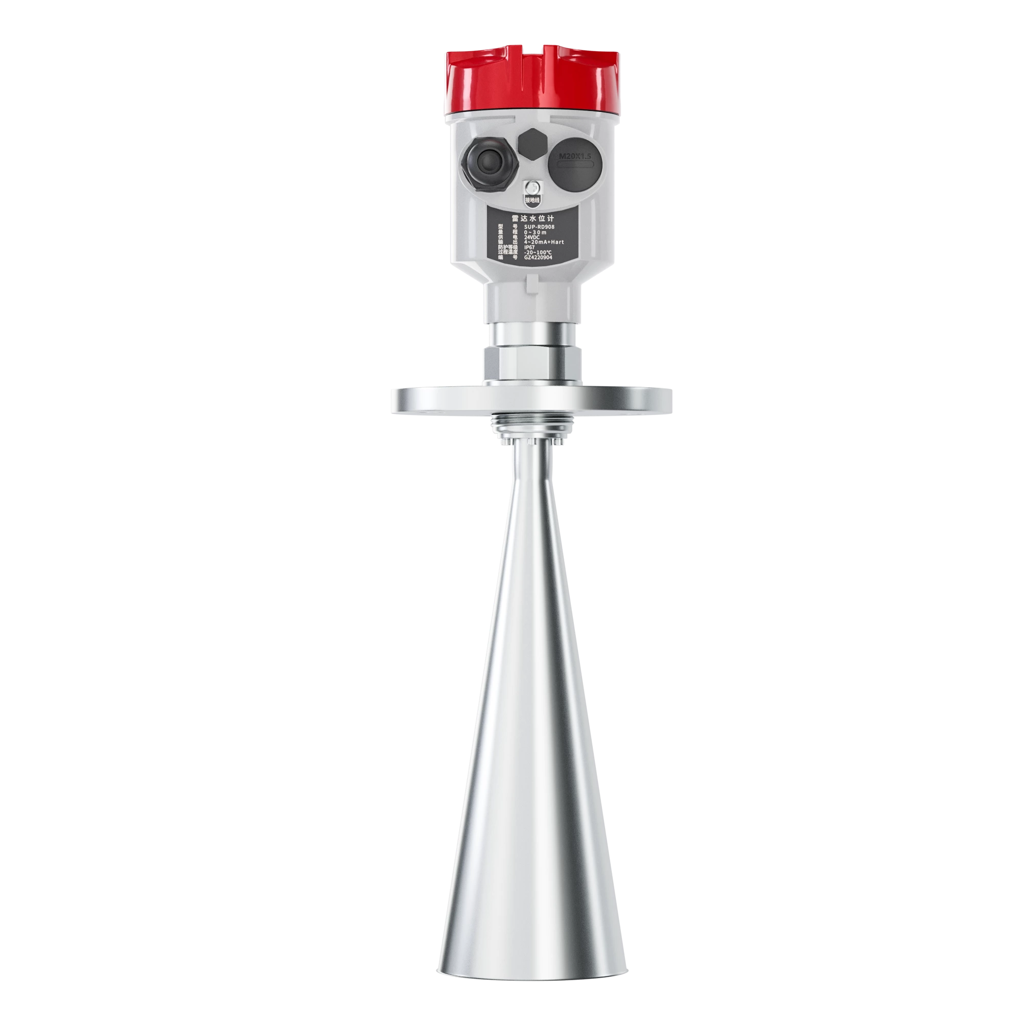 The SUP-RD905 radar level meter is an advanced device used to measure the level of liquids or solids in a container. It uses radar technology to measure the distance between the device and the surface of the material in the container. The radar sends out a microwave signal that reflects off the material and returns to the device. The device then calculates the time it took for the signal to return and uses this to determine the distance between the device and the material.